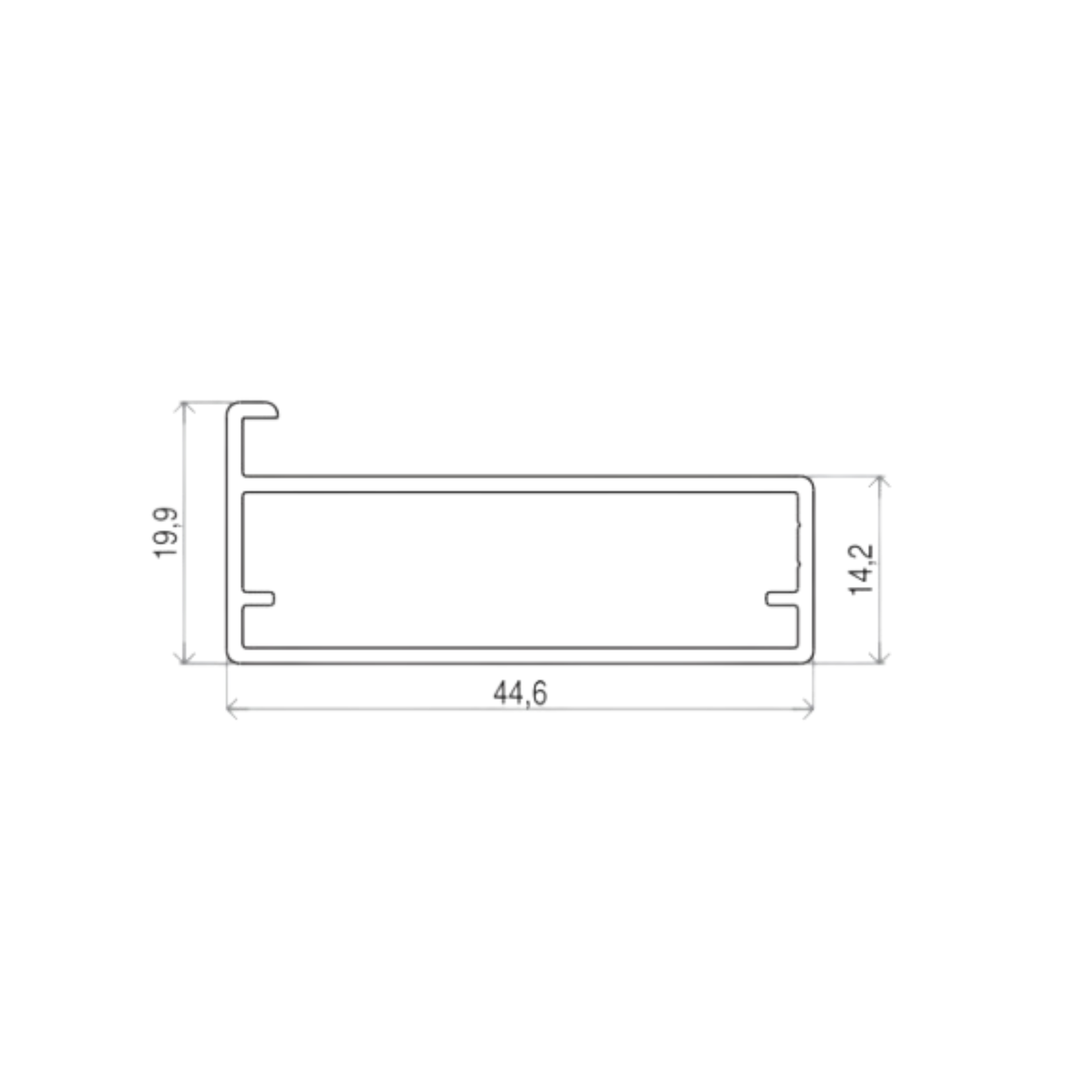 Perfil com recobrimento de 5mm sobre o vidro. Possui 20mm de espessura.